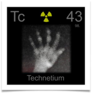Det kunstigt fremstillet grundstof technetium (Tc) med atomnummeret 43, der bruges meget i lægeindustrien udsender betastråler.