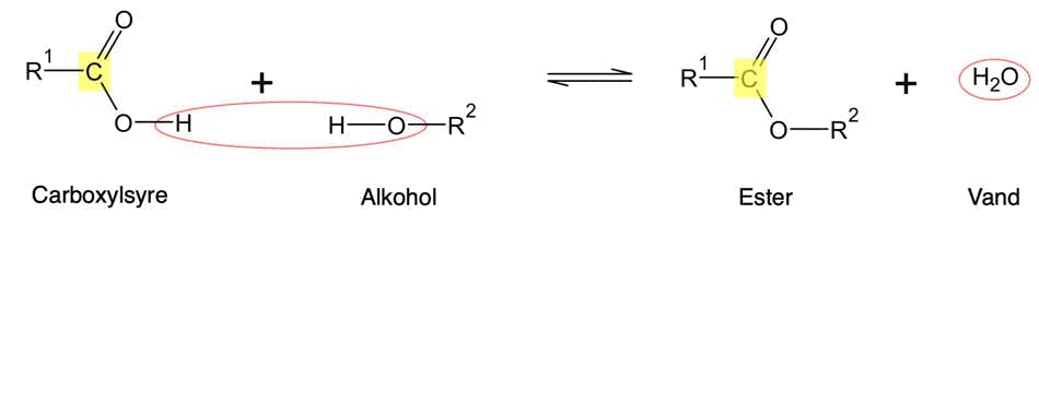 Estere fremstilles af carboxylsyrer og alkoholer ved vand- fraspaltning.