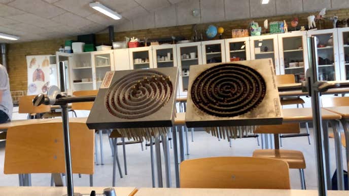 Hvilket er illustreret i videoen nedenfor. I opstillingen til venstre har jeg sat kontrolstænger i således og processen kan styrres. Opstillingen til højre er uden kontrolstænger.